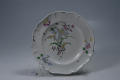 Додаток до назва (лист, ...): Тарілка мілка з фігурним бортом. У центральній частині зображено букет, який складається із блакитного ірису, темно-лілових та червоних квітів. По борту - дві квітучі гілочки./Авторські підписи, клейма: на зворотній стороні денця синя підполивна марка: