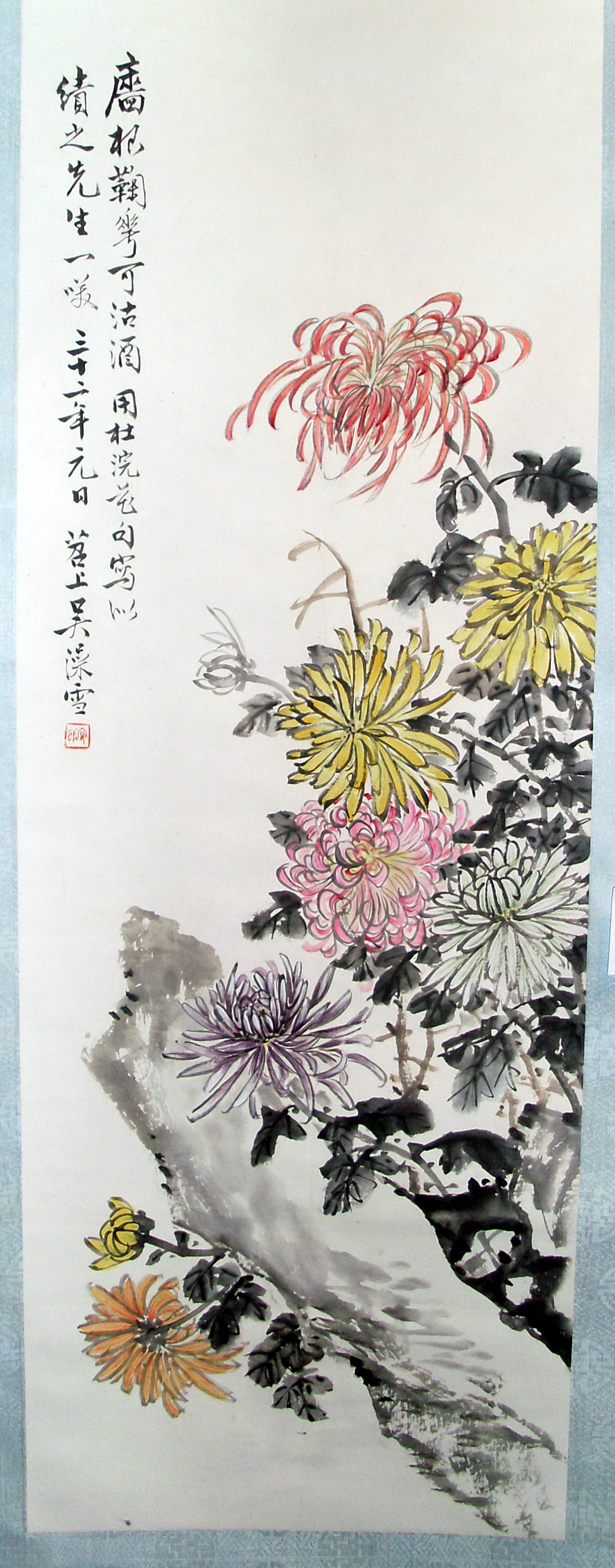 Информацiя об оригiнале: У лівій верхній половині картини напис: "Хризантема і дереза, що зросли на мурі, можна зміняти на вино.