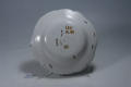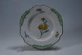Додаток до назва (лист, ...): Тарілка глибока з узорним фігурним бортом.По борту у трьох місцях рельєфний декор жовтувато-зеленого кольору, між яким розташовані маленькі квітучі гілочки. Центральна частина денца декорована зображенням ромашки жовтого кольору/Авторські підписи, клейма: На зворотньому боці денця надполивна марка: