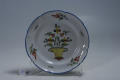 Додаток до назва (лист, ...): Тарілка мілка з декілька хвилястим бортом. Центральна частина декрована зображенням кошика з квітами, по борту три квітучі гілочки та дві гілочки з листям./Авторські підписи, клейма: На зворотньому боці денца в масі видавлена літера М/Кількість: 1