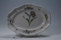 Додаток до назва (лист, ...): Блюдо овальної форми з хвилястим бортом. Центральна частина декорована зображенням великої гвоздики на високому стеблі. Борт декорований жображенням метелика, та трьох квітучих гілочок./Історія Атрибуціi: 1964 р. Михайлова Ольга Ернестовна (Ермітаж): Західна Європа, 18 ст.