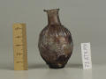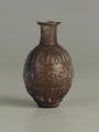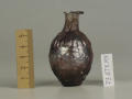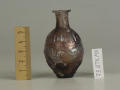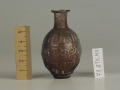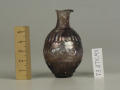 Додаток до назва (лист, ...): Форма корпуса яйцеподібна, дно пласке, шийка циліндрична з відігнутими потовщеними вінцями. Корпус флакона в середній частині декорований смугою рельєфного орнаменту - округленого меандру, плечі та нижня частина рельєфними вертикальними смужками. Флакон відформований з двох половин. Судячи з малюнку, не уповні точно підігнаними одна до одної./Кількість: 1