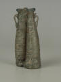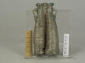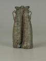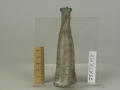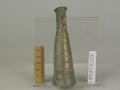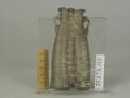 Додаток до назва (лист, ...): Він відформований як одне ціле та декорований рельєфним рубчиком, що охоплює спіраллю всю посудину. Вздовж всього флакона стінки в середній частині спаяні, завдяки чому посудина прибрала форми двох поєднаних, довгих, нерівних по об'єму злегка вигнутих циліндрів, які звужуються догори. У верхнього края вони завершуються потовщеними вінцями. Скляна перемичка поєднує обидва денця. До верхньої частини флакону приварено два маленьких вушка./Кількість: 1