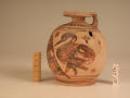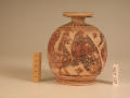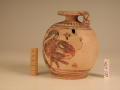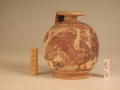 Додаток до назва (лист, ...): Деталі прошкрябані. На лицьовому боці корпуса зображена сирена, яка повернула голову, до птаха, який стоїть поруч. Навколо - розпливчасті заповнювальні мотиви. На плечах посудини, смуга з соковито нанесених штрихів, відділених від розпису корпуса двома смугами. Біля низької кільцевої ніжки такі ж три смуги. На денці два концентричних кола./Кількість: 1/Старі документи прийому: Старі документи прийому в чинному інвентарі не вказані./Опис: Деталі прошкрябані. На лицьовому боці корпуса зображена сирена, яка повернула голову, до птаха, який стоїть поруч. Навколо - розпливчасті заповнювальні мотиви. На плечах посудини, смуга з соковито нанесених штрихів, відділених від розпису корпуса двома смугами. Біля низької кільцевої ніжки такі ж три смуги. На денці два концентричних кола.