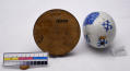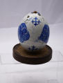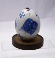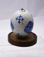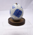 Додаток до назва (лист, ...): Яйце на дерев'яній підствці, декороване трьома великими ромбами з чотирипелюстковими квітками./Кількість: 1