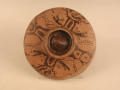 Додаток до назва (лист, ...): Відлога поверхня кришки розділена на дві частини. В кожній зображені повернені в профіль одна напроти одної дві голови амазонок. Волосся їх покрите головними уборами, прикрашеними смугою з чорних цяток. Між обличчями амазонок знизу - невеликий завиток. На закраїнці, яка звисає донизу - орнамент з ов. Внутрішня поверхня кришки покрита чорним лаком з коричневим віддтінком./Кількість: 1/Опис: Відлога поверхня кришки розділена на дві частини. В кожній зображені повернені в профіль одна напроти одної дві голови амазонок. Волосся їх покрите головними уборами, прикрашеними смугою з чорних цяток. Між обличчями амазонок знизу - невеликий завиток. На закраїнці, яка звисає донизу - орнамент з ов. Внутрішня поверхня кришки покрита чорним лаком з коричневим віддтінком.