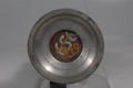 Додаток до назва (лист, ...): Кубок у вигляді видовженого посуду з перехватом по середині, на якому розташовані 12 "вушок" з кільцями. Ніжка оправлена в метал. Кришка металева, завершується фігурою лицаря./Кількість: 1