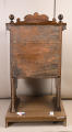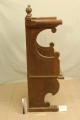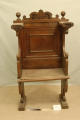 Додаток до назва (лист, ...): Сталь з пласким сидіннім та подвійними підлокотниками. Спинка з рельєфною прямокутною рамкою та карнізом, які закінчуються різьбленим гребнем./Кількість: 1/Зв'язок з іншими предм. музею: парна до № 33