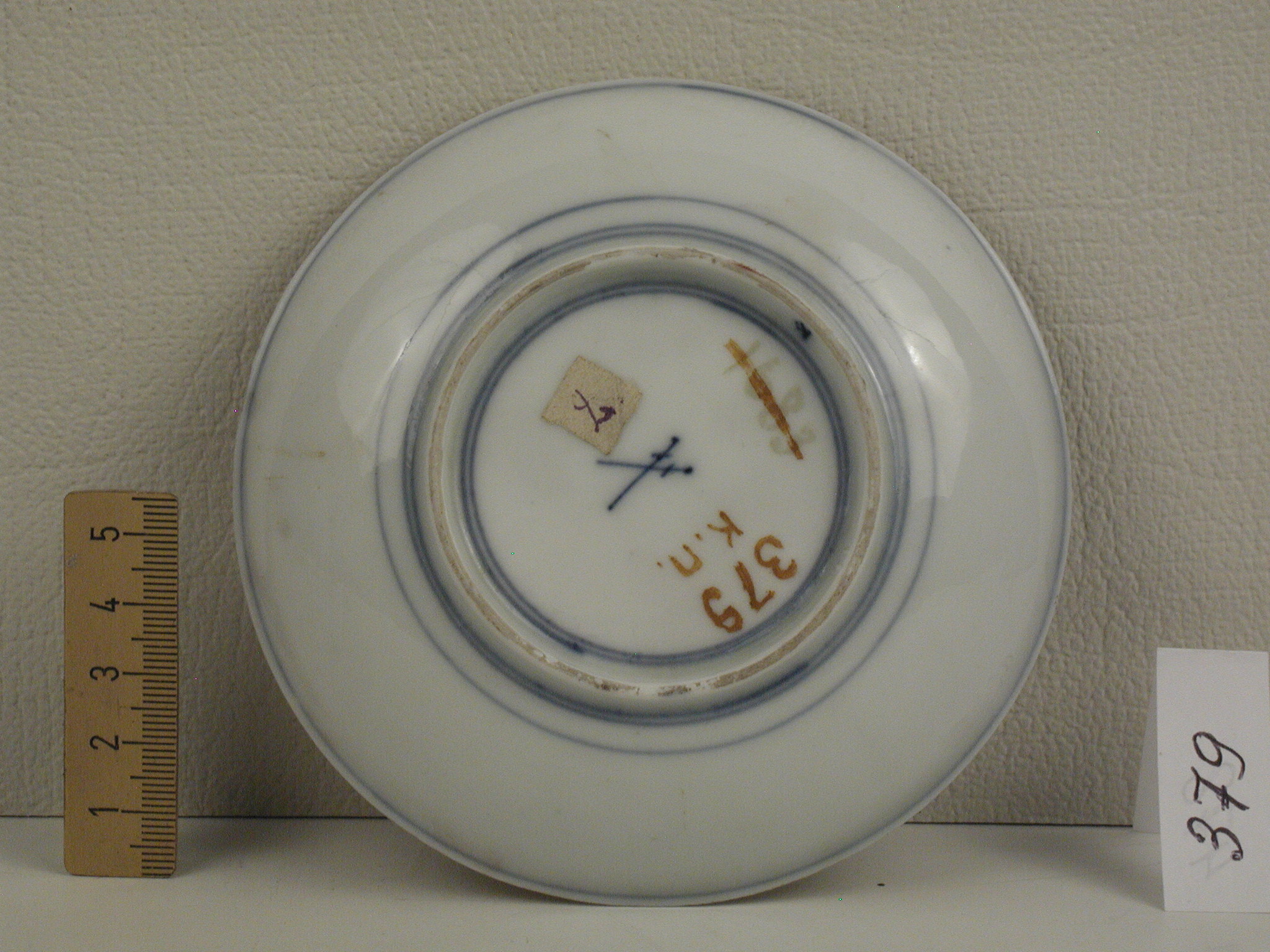 Авторські підписи, клейма: марка синя підглазурна: схрещені мечі/Історія Атрибуціi: консультація Р.С. Соловейчик (Ермітаж, 1961 р.) - Мейсен, перша половина 18 ст. (Hausmalerei)/Кількість: 1/Зв'язок з іншими предм. музею: блюдце до чашки 265 ПК МХ