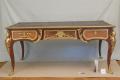 Додаток до назва (лист, ...): Стіл з трьома шухлядками , столешня обтягнута шкірою. Спирається на 4 вигнуті ніжки, по кутах, у верхній частині ніжок - жіночі бюсти./Информацiя об оригiнале: Копія стола роботи Крессана, що знаходиться у Луврі/Кількість: 1