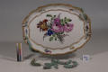 Додаток до назва (лист, ...): овальної форми на шести ніжках у вигляді стовбчиків/Історія Атрибуціi: консультація Р.С. Соловейчик (Ермітаж, 1961 р.) - Мейсен, 1774 - 1815/Кількість: 1