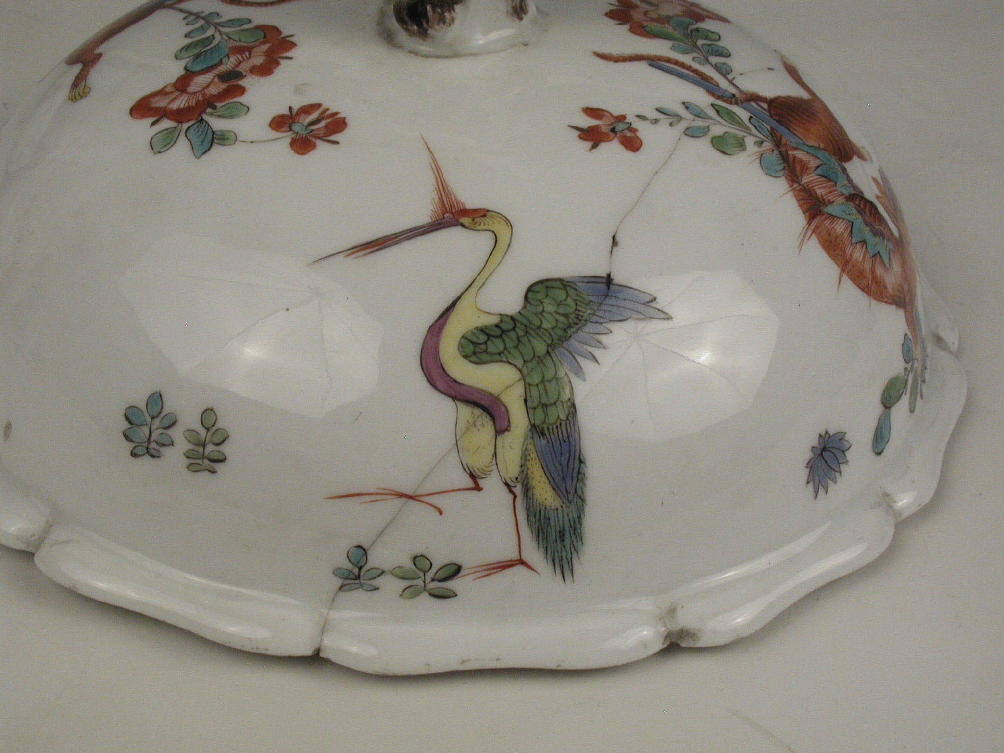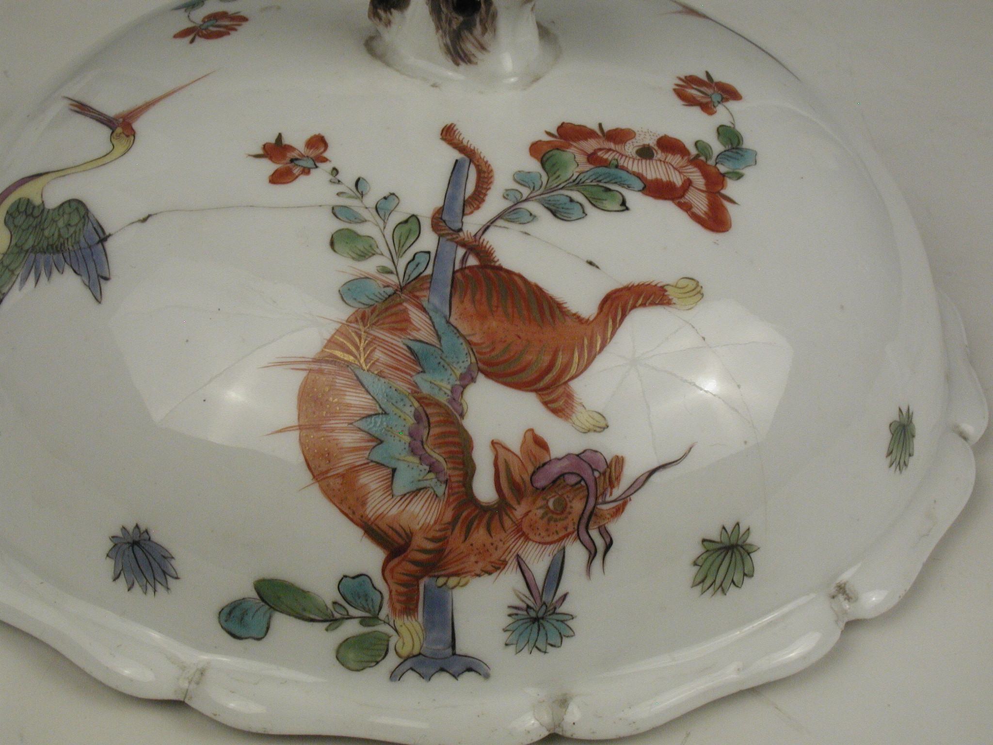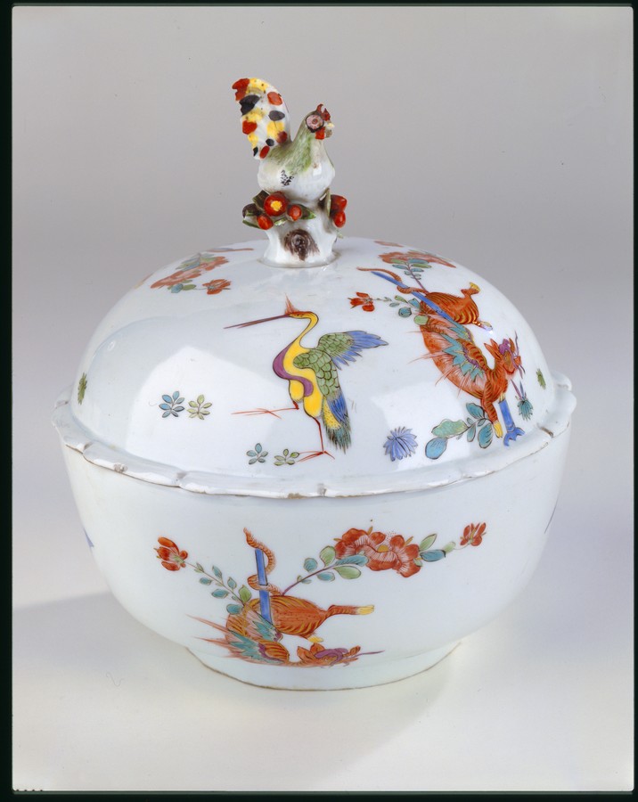 Закладка “Атрибуція” - Наим. предмета, издания: Супниця/Змiн. розміри: висота з кришкою 22/Змiн. Написи, клейма, марки: марка синя підглазурна: схрещені мечі/Змiн. час створення: перша половина XVIII ст.місце створення, школа: Королівська порцелянова мануфактураИзм. техника: золоченняНовый материал: порцелянаИзм. техника: надглазурний поліхромний розпис
