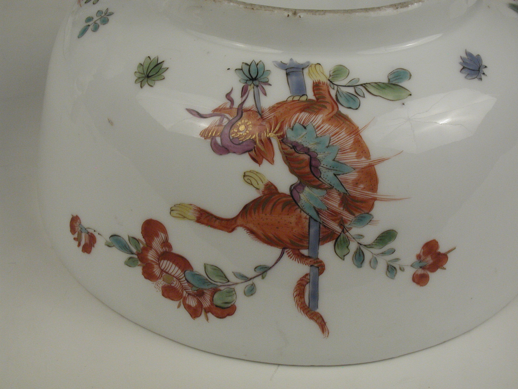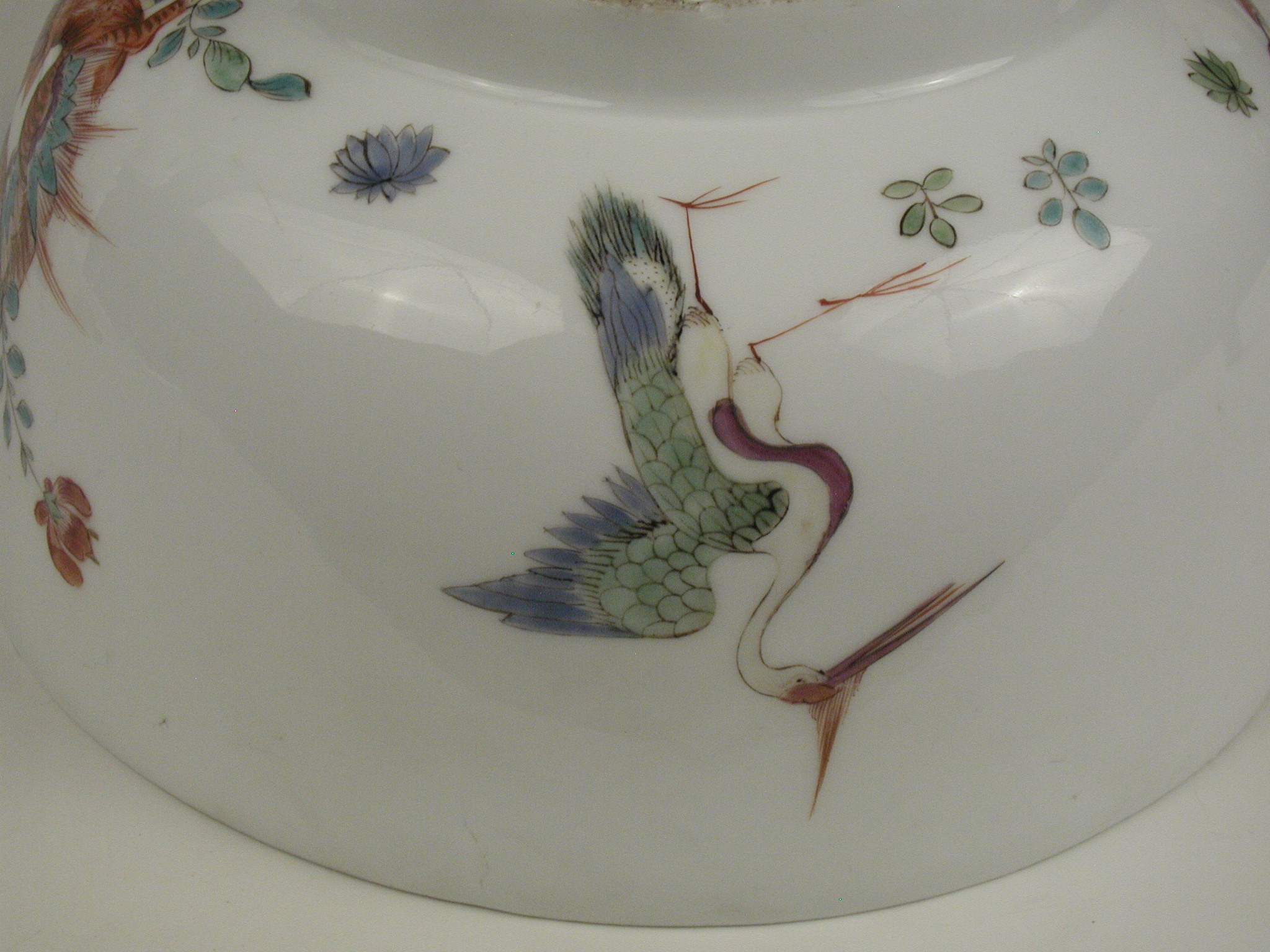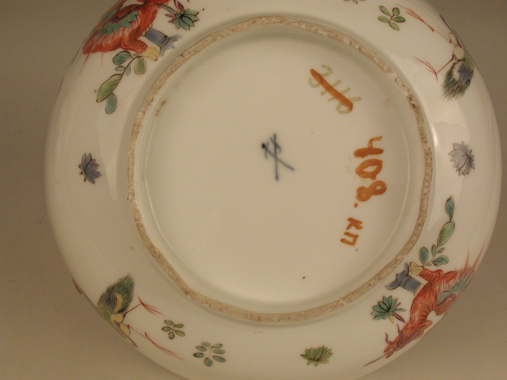 Авторські підписи, клейма: марка синя підглазурна:/Історія Атрибуціi: консультація Р.С. Соловейчик (Ермітаж, 1961 р.) - Мейсен, перша половина 18 ст. (миска для супу, хороша за якістю виконання)/Кількість: 1