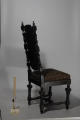 Додаток до назва (лист, ...): Стул чорного дерева, з високою спинкою та м'яким сидінням. Спинка декорована інкрустацією солновою кісткою, тема декору - галантні сюжети./Кількість: 1