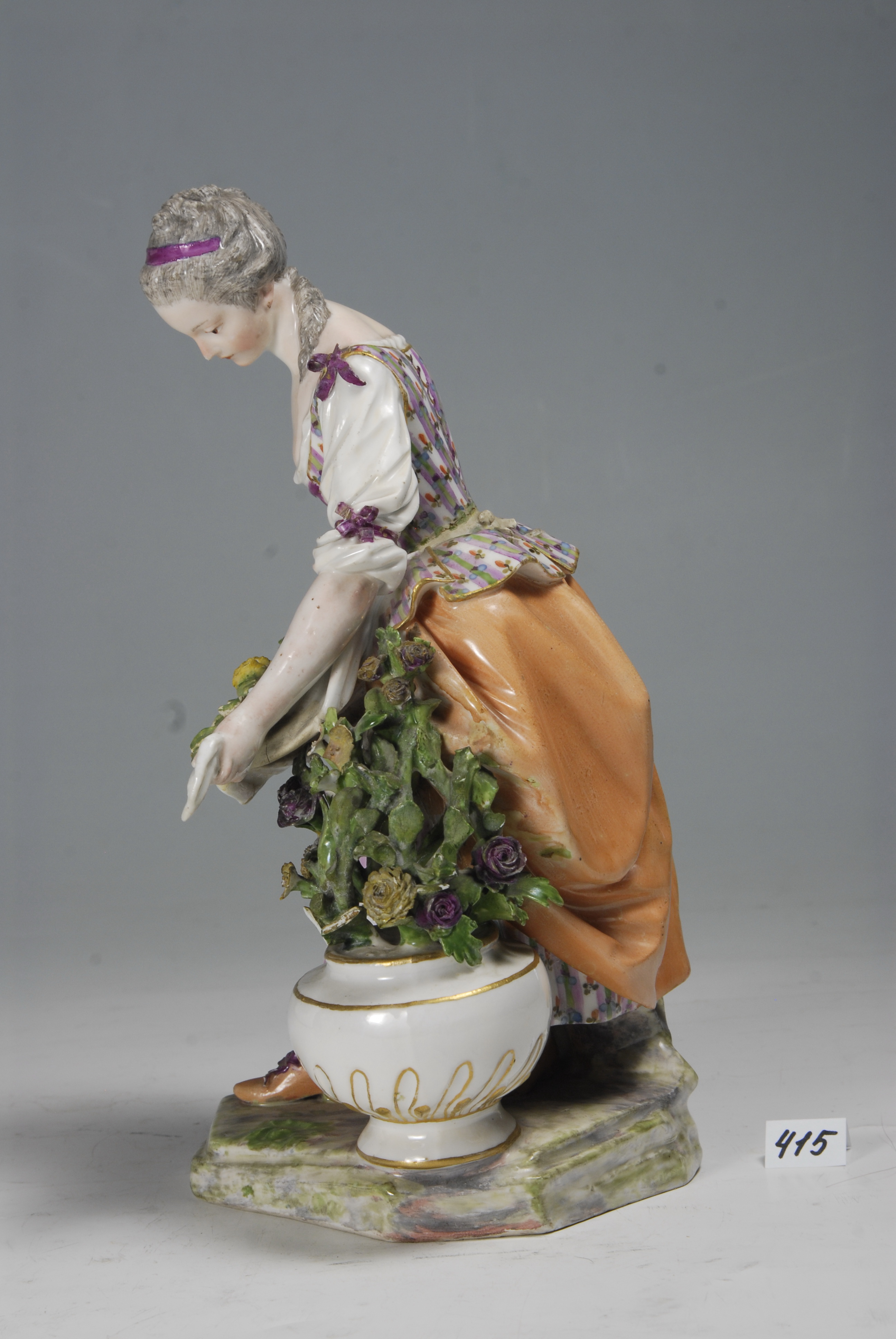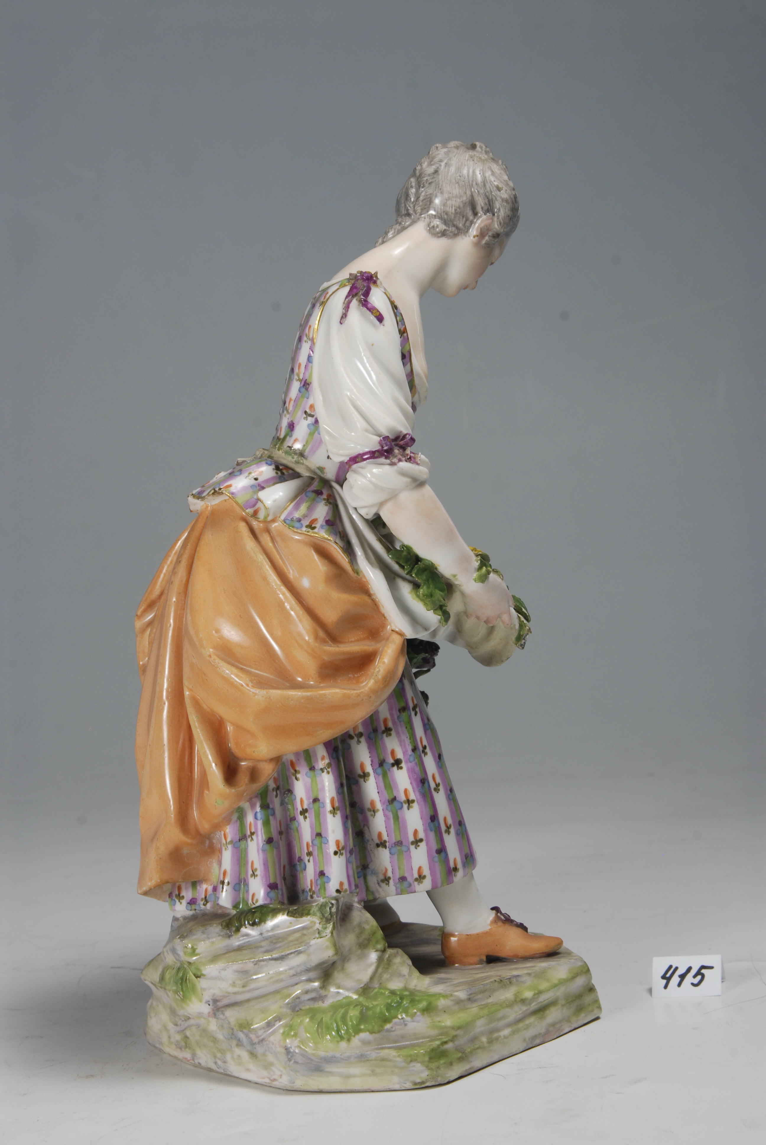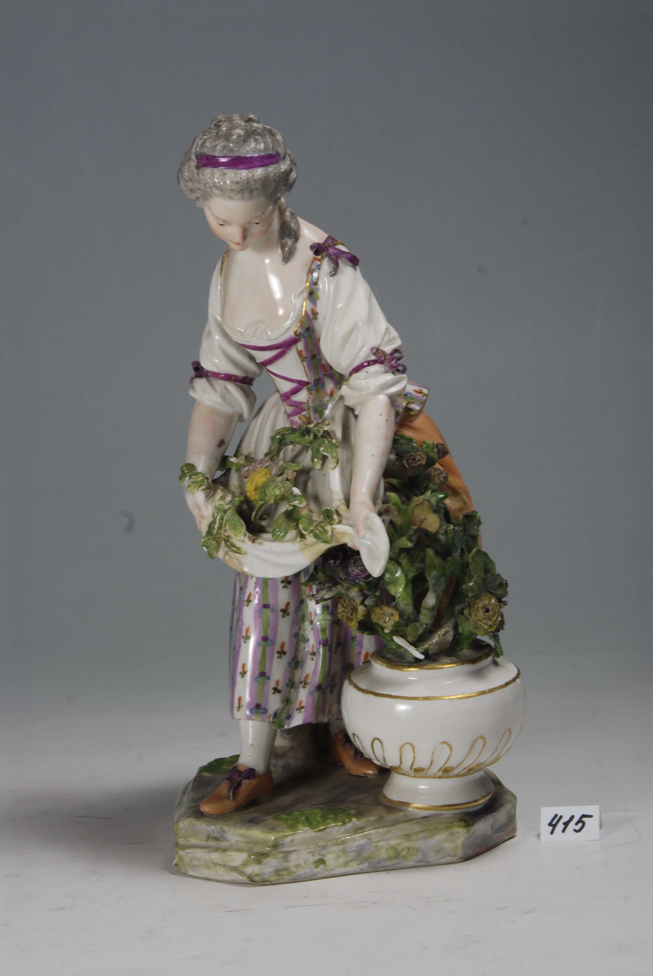 Авторські підписи, клейма: марка синя на бісківті (ледь помітна, вигоріла)/Історія Атрибуціi: консультація Р.С. Соловейчик (Ермітаж, 1961 р.) - 19 ст. , за мейсенською моделлю кінця 18 ст. (Садівниця)/Кількість: 1
