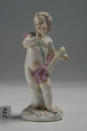 Закладка “Атрибуція” - Змiн. Написи, клейма, марки: Марка синя підглазурна (на підніжжі ззаду): схрещені мечі з крапкою/Змiн.опис: Оголений хлопчик з жмутом колосся в правій руці стоїть спершись на праву ногу та виставивши ліву вперед; лівою рукою він підтримує звязаний сноп; його спина та стегна прикриті бузковим плащем на бірюзовій підкладці, розписаним золотими квіточками. Підніжжя овальне з пнем та рельєфними колосками./Змiн. час створення: 1763 - 1774місце створення, школа: Королівська порцелянова мануфактураИзм. техника: надглазурний поліхромний розпис