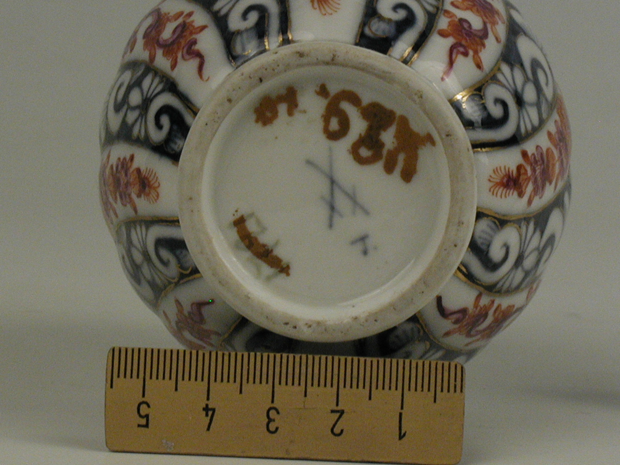 Авторські підписи, клейма: марка синя підглазурна: схрещені мечі/Історія Атрибуціi: консультація Р.С. Соловейчик (Ермітаж, 1961 р.) - Мейсен, 1730 - 1735 рр. (розпис "імарі")/Кількість: 1