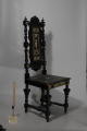 Додаток до назва (лист, ...): Стул чорного дерева, з високою спинкою та дерев'яним сидінням. Спинка сидіння декоровані інкрустацією солновою кісткою, тема декору - галантні сюжети./Кількість: 1