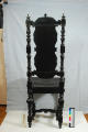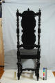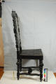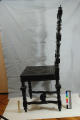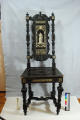 Додаток до назва (лист, ...): Стул чорного дерева, з високою спинкою та дерев'яним сидінням. Спинка сидіння декоровані інкрустацією солновою кісткою, тема декору - галантні сюжети./Кількість: 1