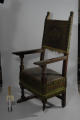 Додаток до назва (лист, ...): Крісло із шкиряним сидінням, по нижньому краю бахрома. Спинка не висока з золоченими різьбленим листям, підлокотники широкі пласкі./Кількість: 1