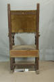 Додаток до назва (лист, ...): Крісло із шкиряним сидінням, по нижньому краю бахрома. Спинка не висока з золоченими різьбленим листям, підлокотники широкі пласкі./Кількість: 1