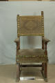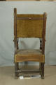 Додаток до назва (лист, ...): Крісло із шкиряним сидінням, по нижньому краю бахрома. Спинка не висока з золоченими різьбленим листям, підлокотники широкі пласкі./Кількість: 1