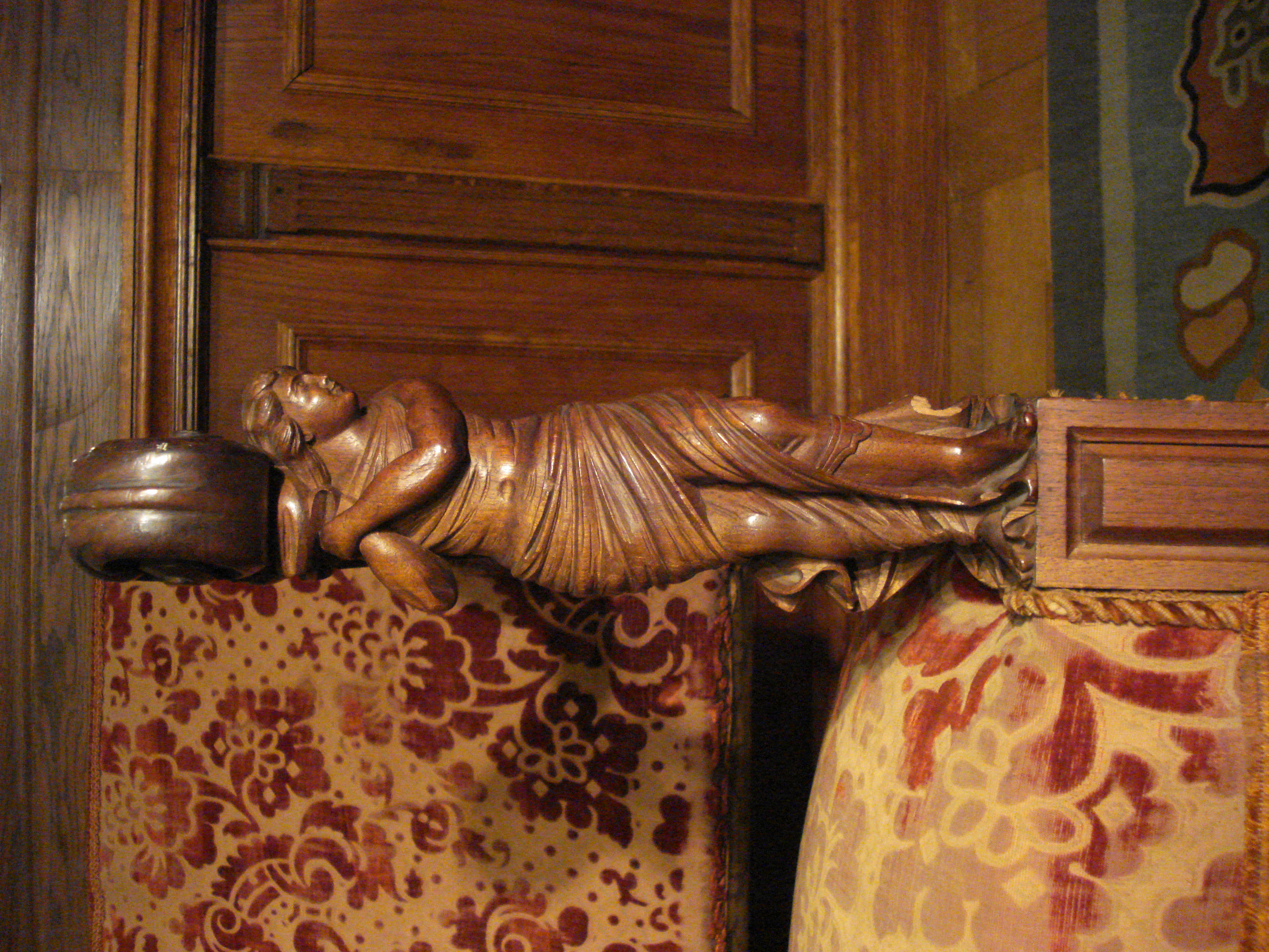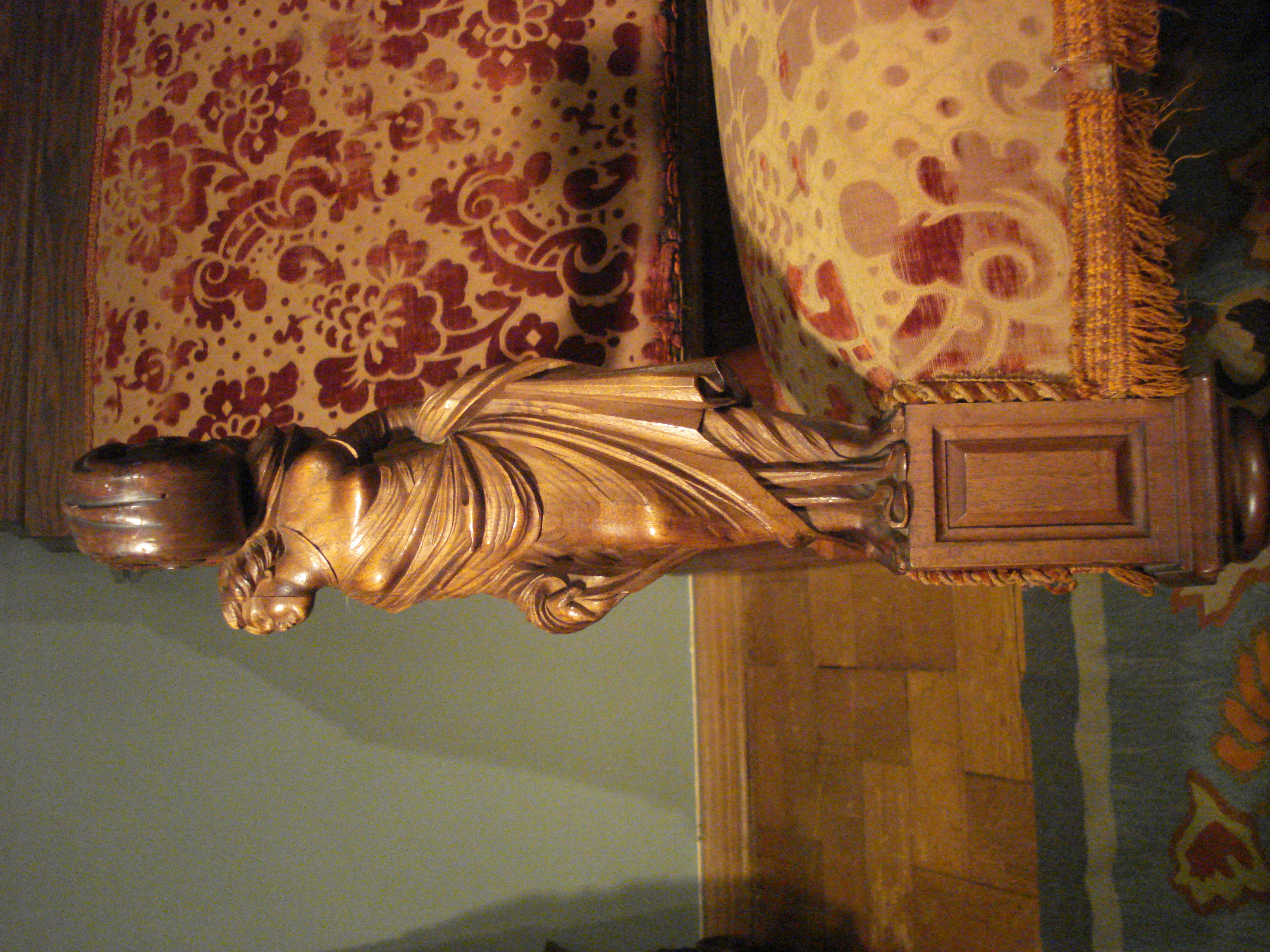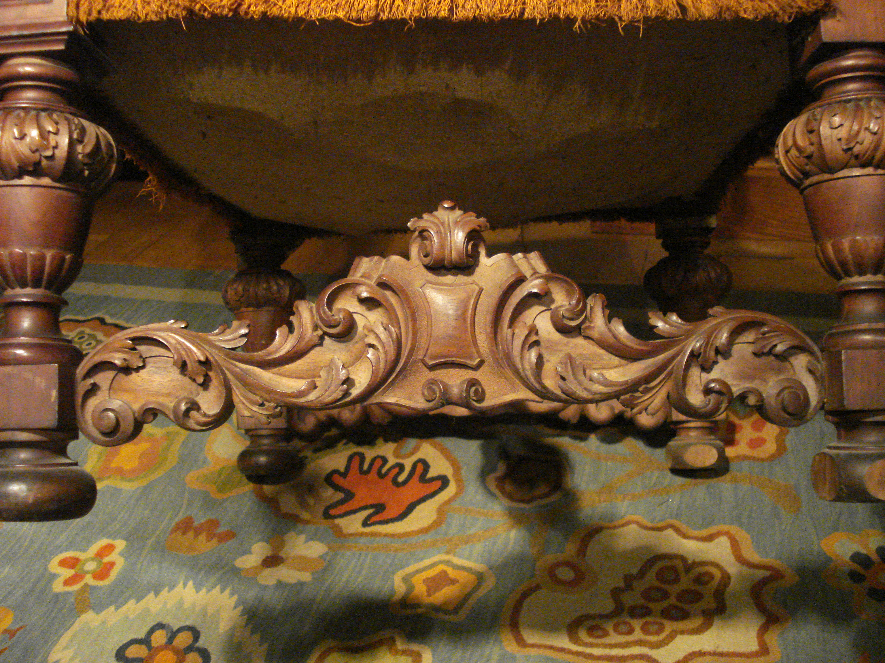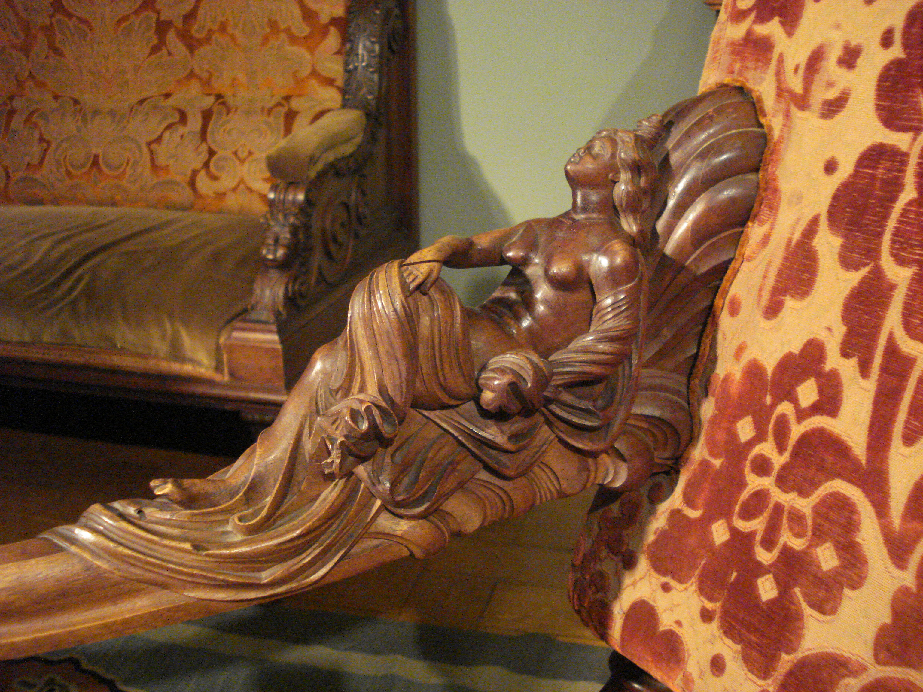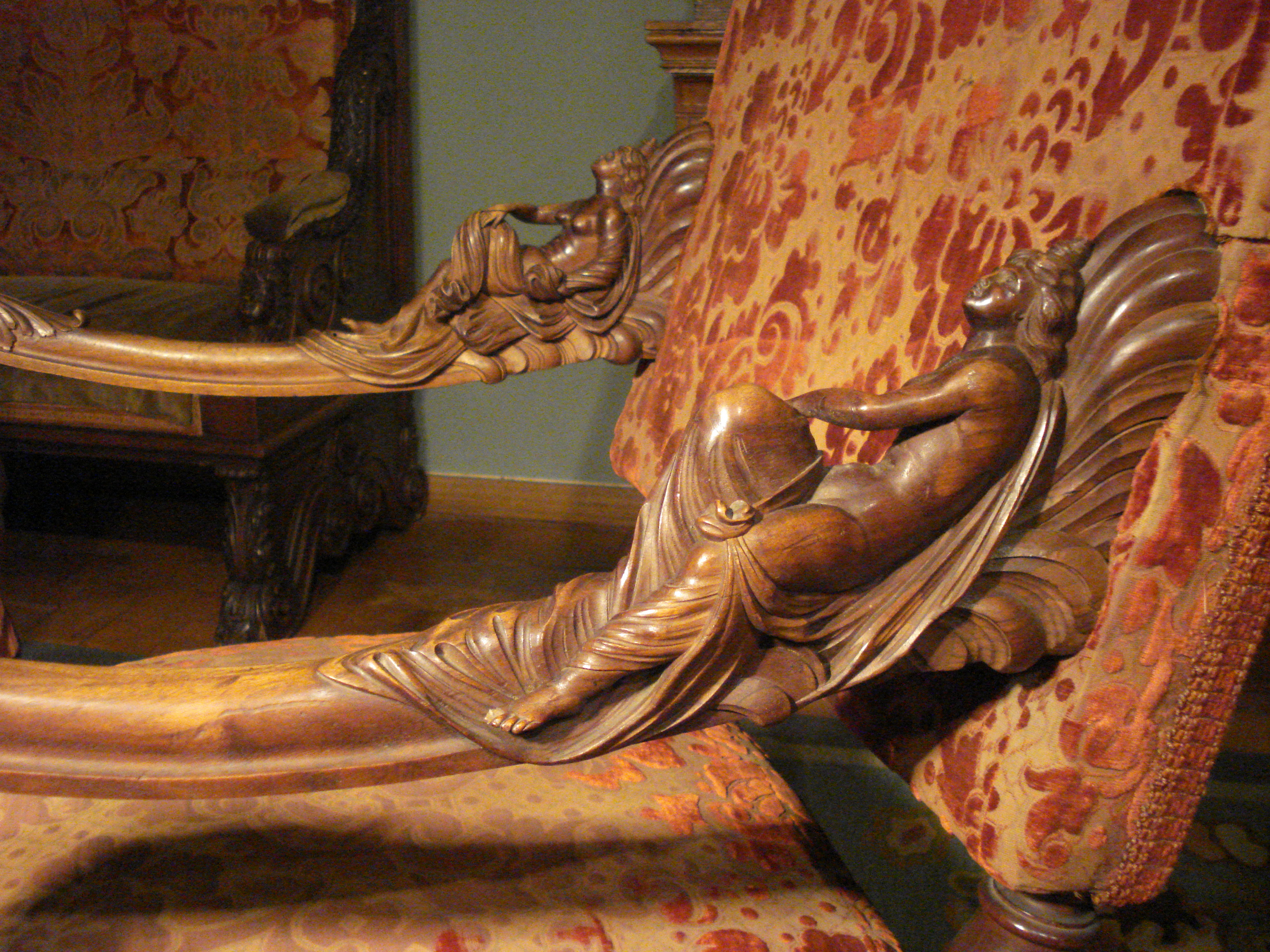 Додаток до назва (лист, ...): Крісло широке з мяким сидінням та віідогнутою назад спинкою, обите темно-коричневим оксамитом. Підлокотники дерев'яні, вигнуті з різьбленими фігурами оголених жінок, які лежать./Аналогіi: Повний аналог знаходиться в Національному художньому музеї Республіки Білорусь (м. Минськ) інв. № ЗП - 60; КП - 12443. Надішло до музею у 1969 році з атрибуцією: Італія, 16 ст. Фото надано музею провідним науквим співробітником НХМРБ Калашнік Наталією Миколаївною у 2010 р./Кількість: 1