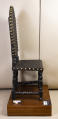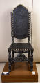 Додаток до назва (лист, ...): Стілець з високою спинкою. Сидіння та спинка шкіряні, декоровані тисненим орнаментом з рослинними елементами. Шкіра прибита декоративними цвяхами./Кількість: 1