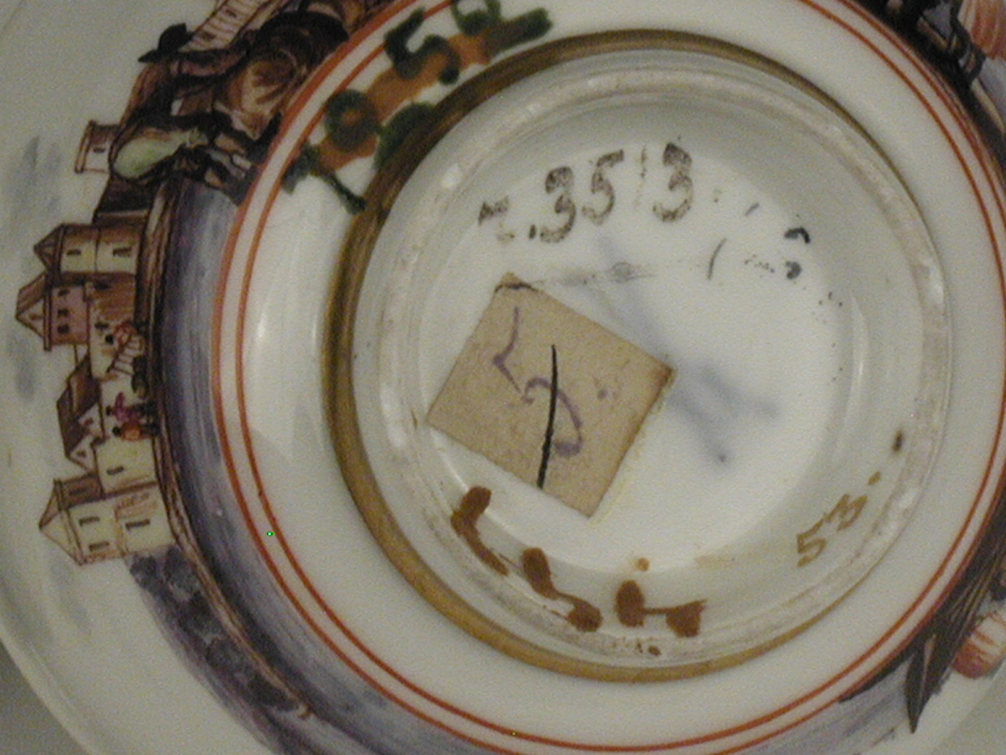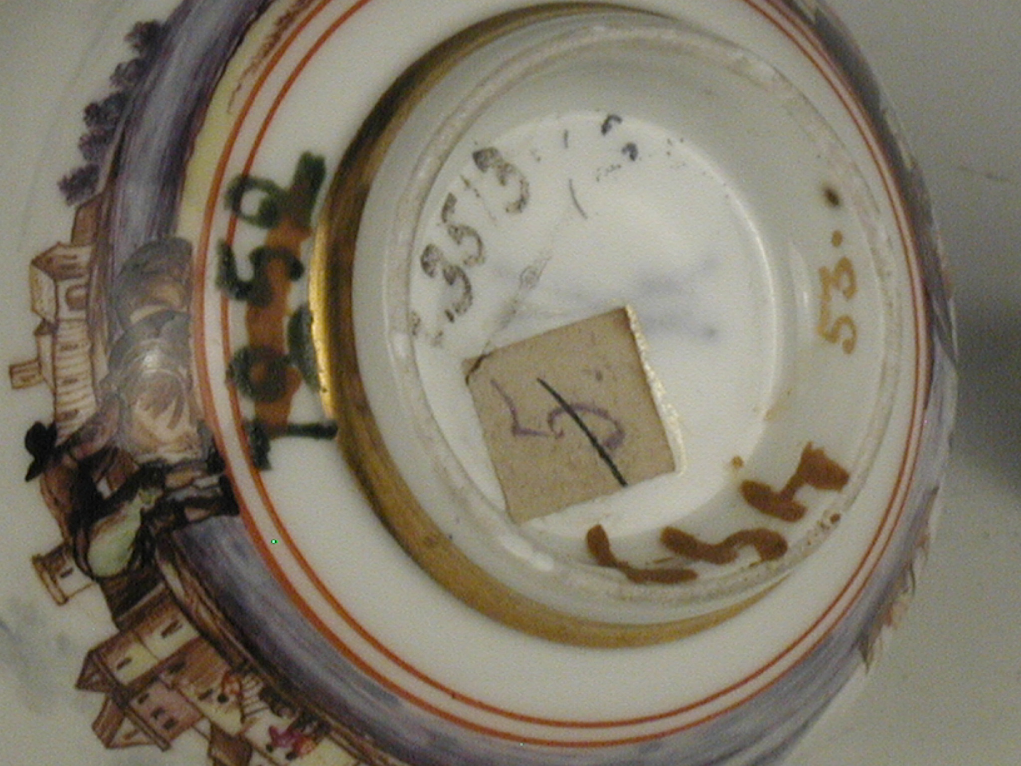 Авторські підписи, клейма: марка синя підглазурна; золотом: 53/Історія Атрибуціi: консультація Р.С. Соловейчик (Ермітаж, 1961 р.) - Мейсен, близько 1735 р.