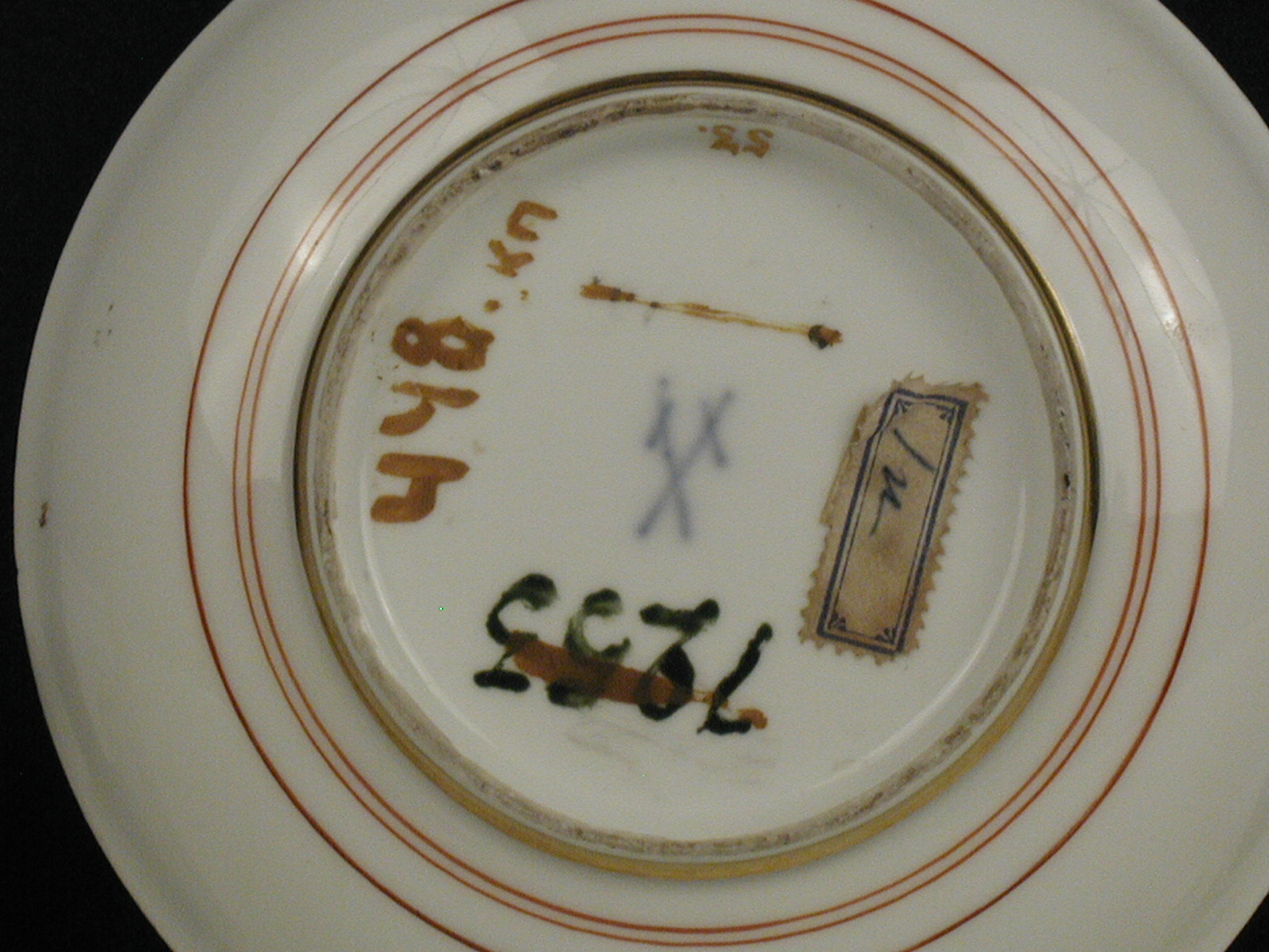 Авторські підписи, клейма: марка синя підглазурна; золотом: 53/Історія Атрибуціi: консультація Р.С. Соловейчик (Ермітаж, 1961 р.) - Мейсен, 1735 - 1740 рр.