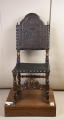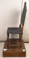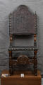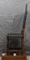 Додаток до назва (лист, ...): Стілець з прямокутним сидінням та спинкою, обтягнутий шкіро із тисненим орнаментом. Шкіра прибита декоративними цвяхами./Кількість: 1