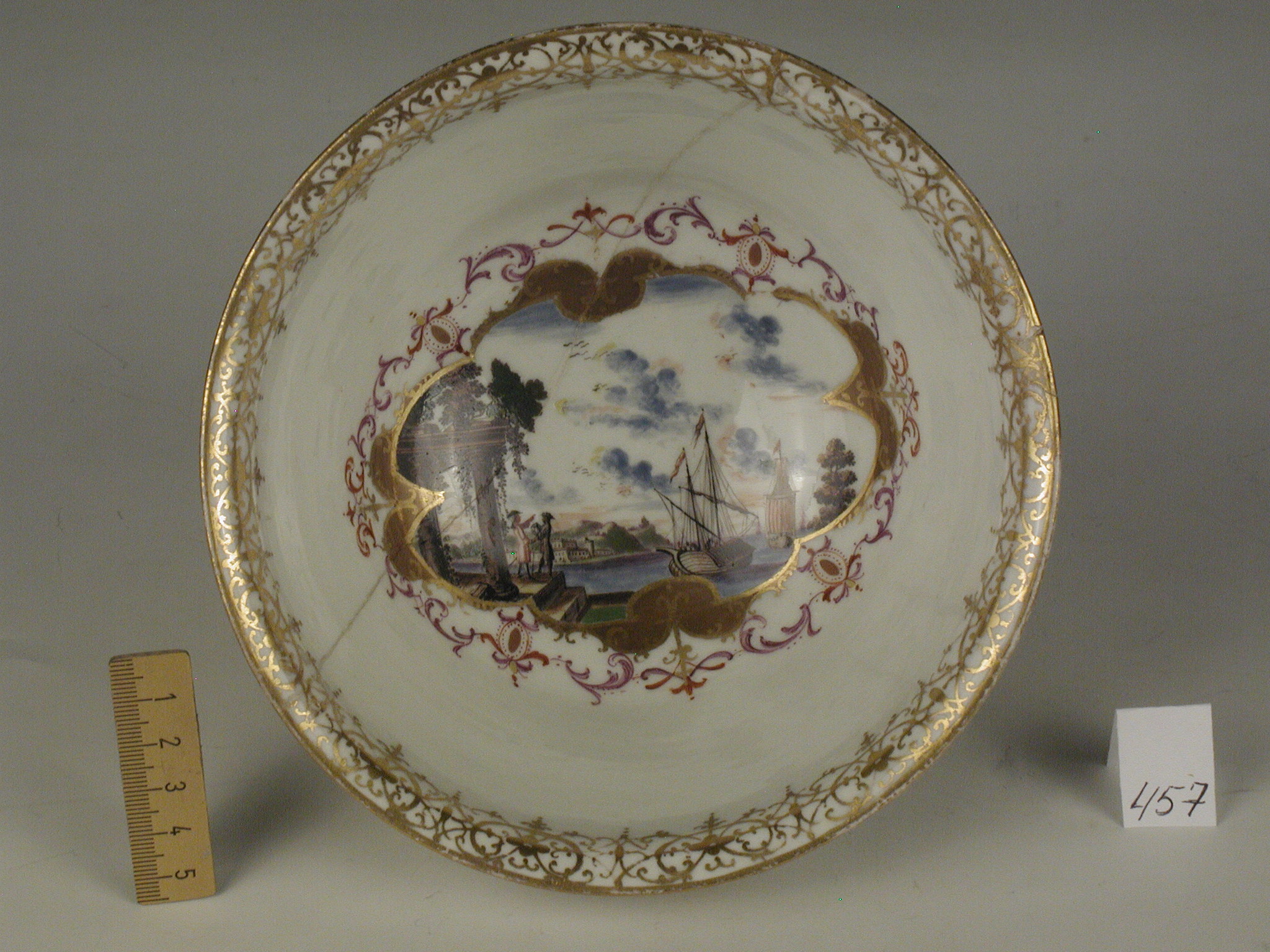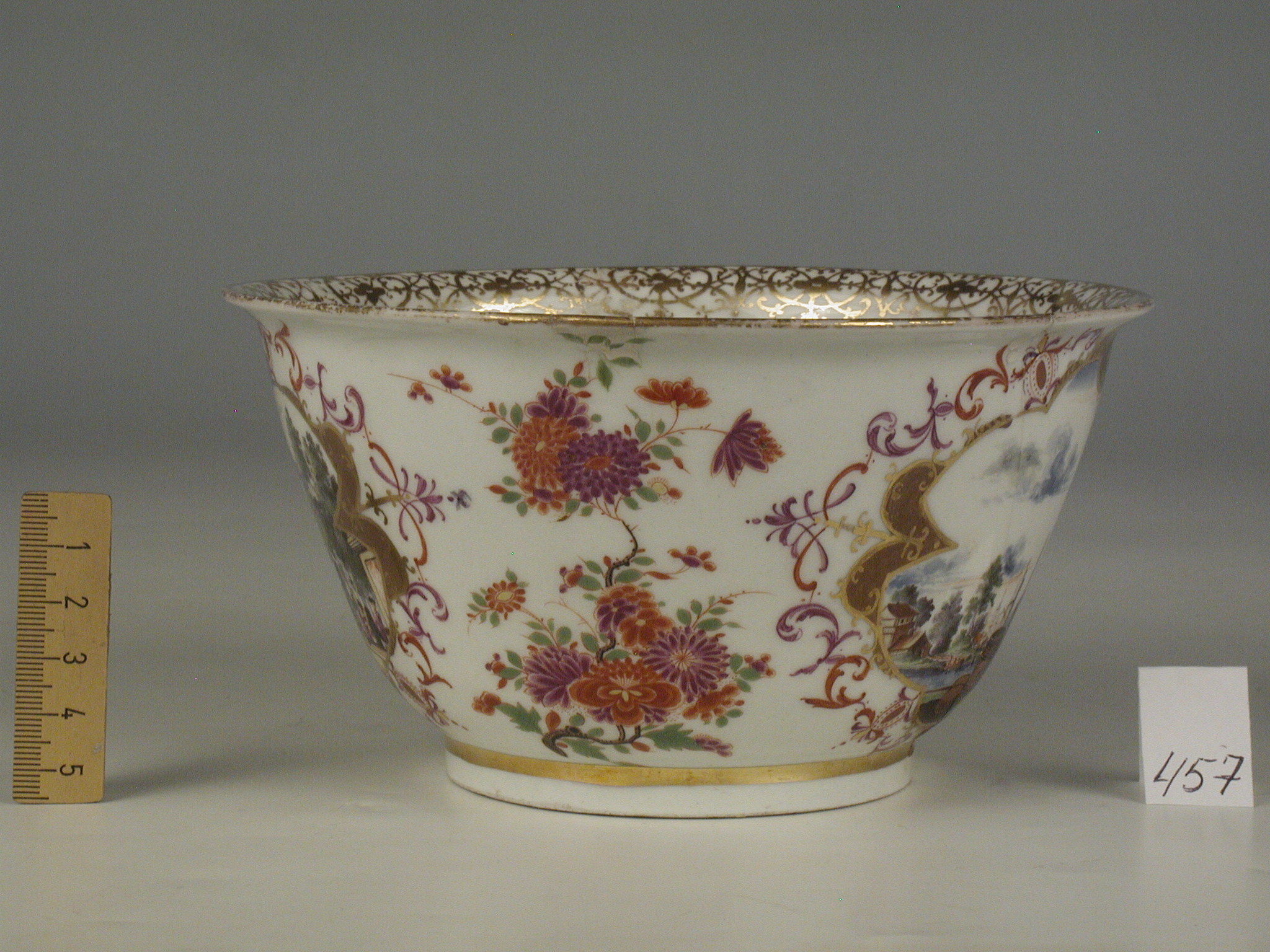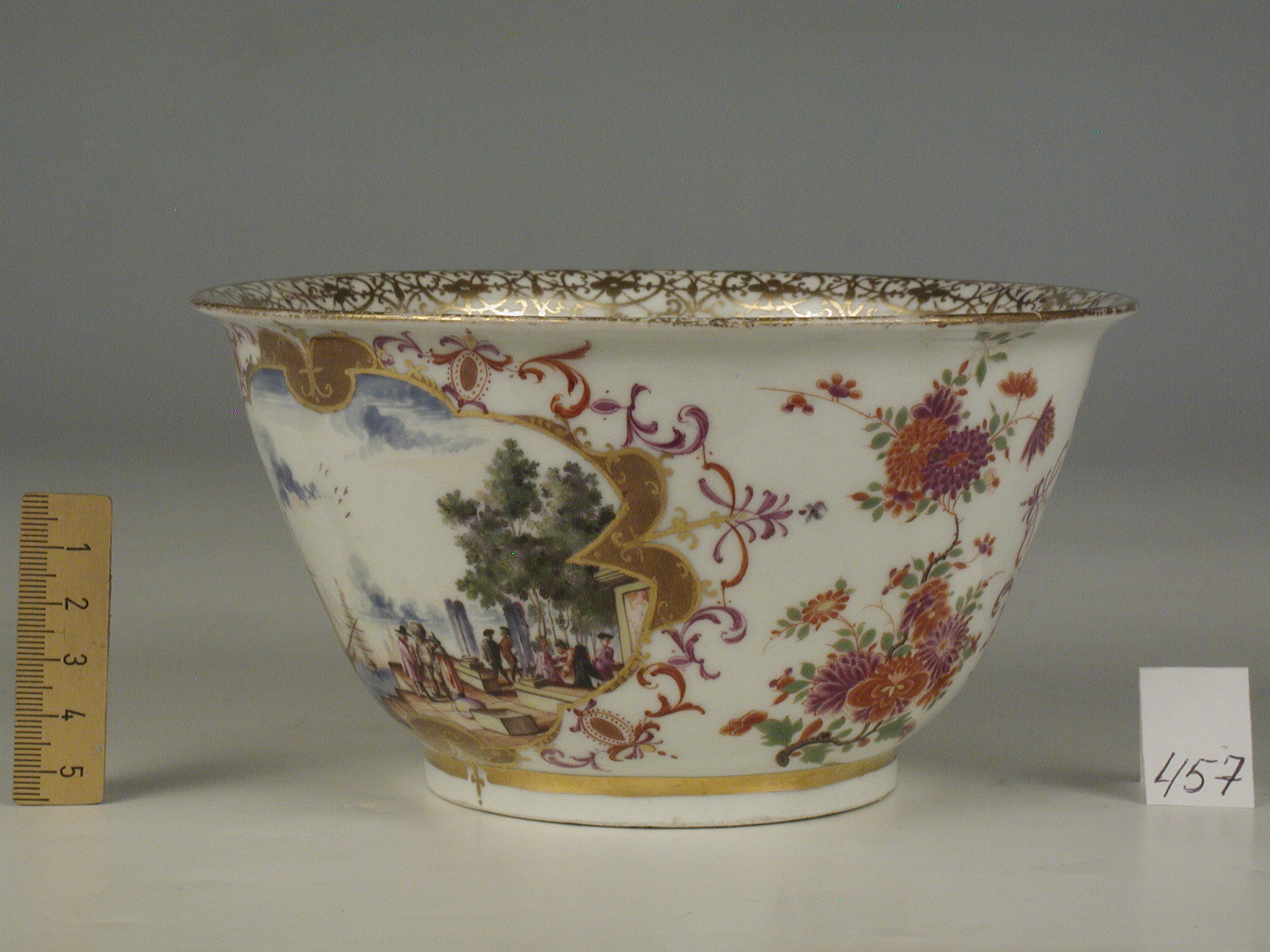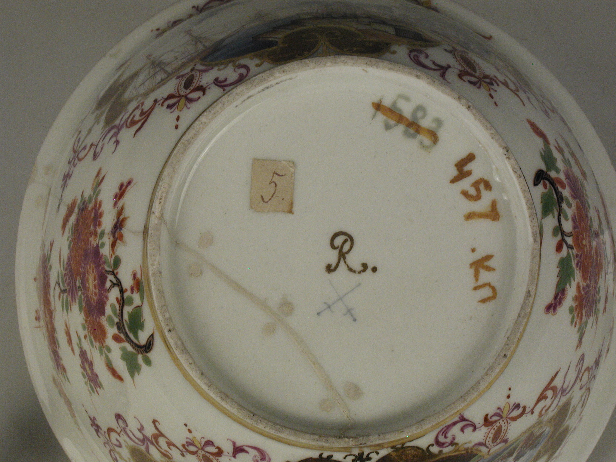 Авторські підписи, клейма: марка синя підглазурна/Історія Атрибуціi: консультація Р.С. Соловейчик (Ермітаж, 1961 р.) - Мейсен, близько 1735 р. (полоскальниця. Справжність визиває сумніви)/Кількість: 1