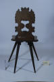 Додаток до назва (лист, ...): Стілець невисокий, з широким сидінням та невисокою фігурною спинкою. Спинка декорована різьбленим наскрізним орнаментом./Кількість: 1