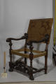 сидіння провалене; тканина порвана; відламаний кусок дерева на одній з ніжок,