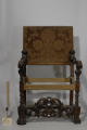 Додаток до назва (лист, ...): Крісло м'яке, невисоке, різьблене. Вигнуті підлкотники декоровані актантовим листям. Сидіння обите парчою малинового кольору./Кількість: 1