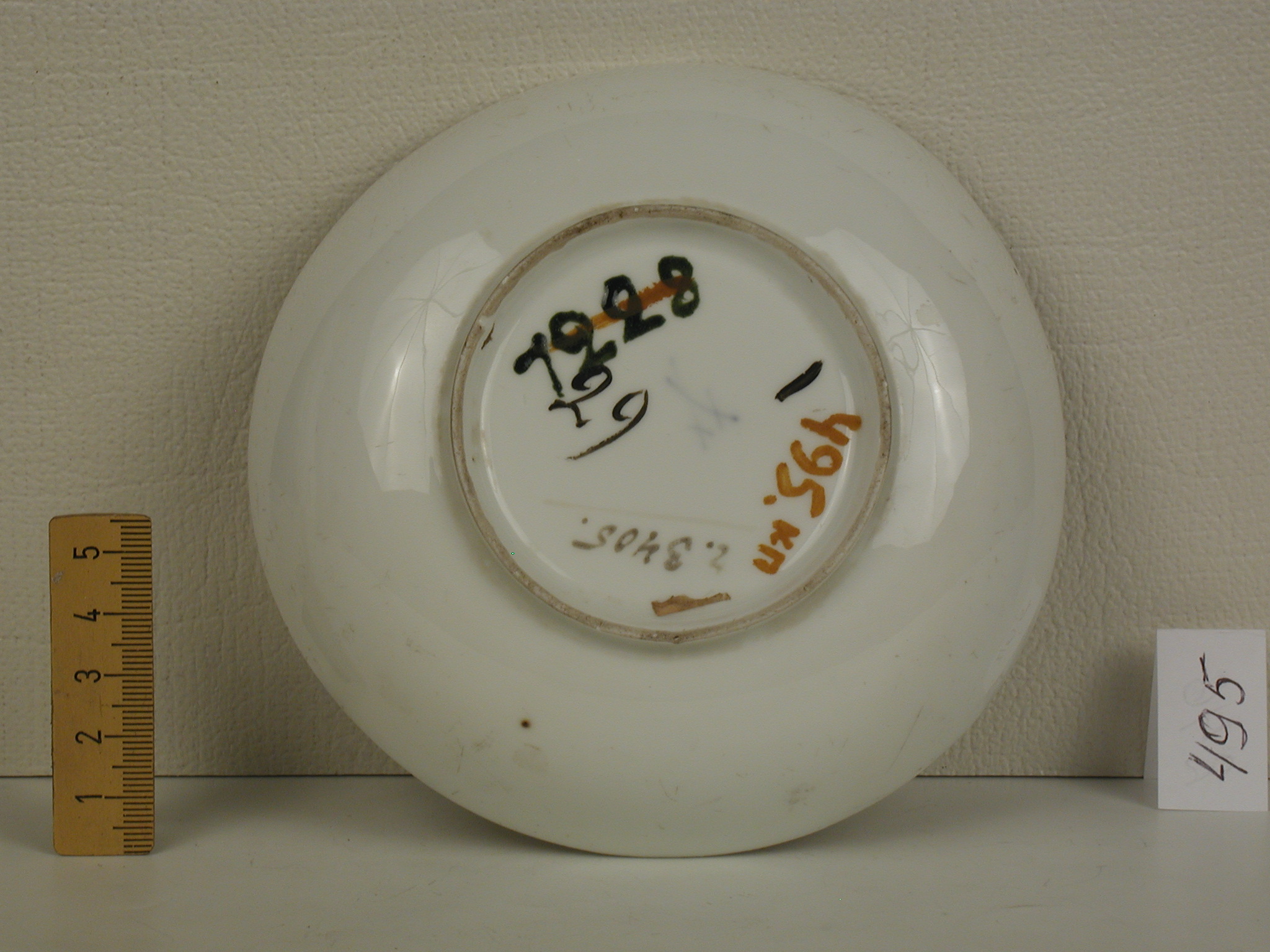 Додаток до назва (лист, ...): з масонськими знаками/Авторські підписи, клейма: марка синя підглазурна/Історія Атрибуціi: консультація Р.С. Соловейчик (Ермітаж, 1961 р.) - Мейсен, сер. 18 ст. (форма рання, розпис середини 18 ст. з масонськими знаками. Бл. 1740 р., можливо Hausmalerei)/Кількість: 1