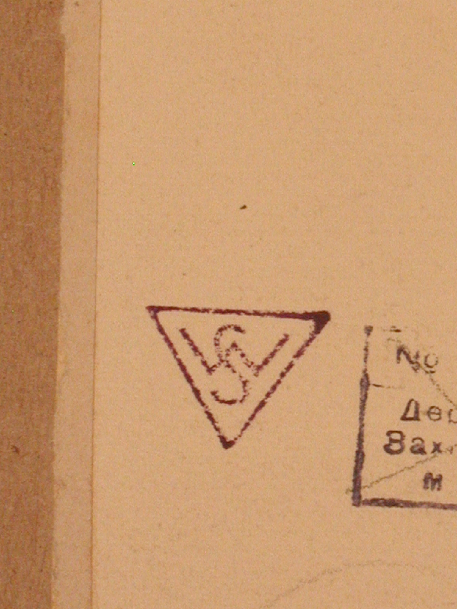 Поля обрізані. Біля правого краю зі звороту наклеєна вузька смуга паперу. Вздовж верхнього краю у трьох місцях сліди наклеєного паперу. Злам у правому нижньому куті.,