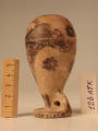 Додаток до назва (лист, ...): На його корпусі зображені два великі птахи з червоними гребенями. Між ними зображена невеличка птаха з розпростертими крилами, яка летить зліва направо. Заповнювальні мотиви зроблені у вигляді розеток. Велика розетка розміщена на денці посудини. Шийка і верхня частина вінець горла прикрашена радіально розташованими смужками. По борту вінець - ряд цяток. розпис орієнталізуючого стилю. розфарбування виконане темно-коричневим лаком і пурпуром./Кількість: 1/Старі документи прийому: Старі докумнети прийому в чинній інвентарній книзі не вказані.