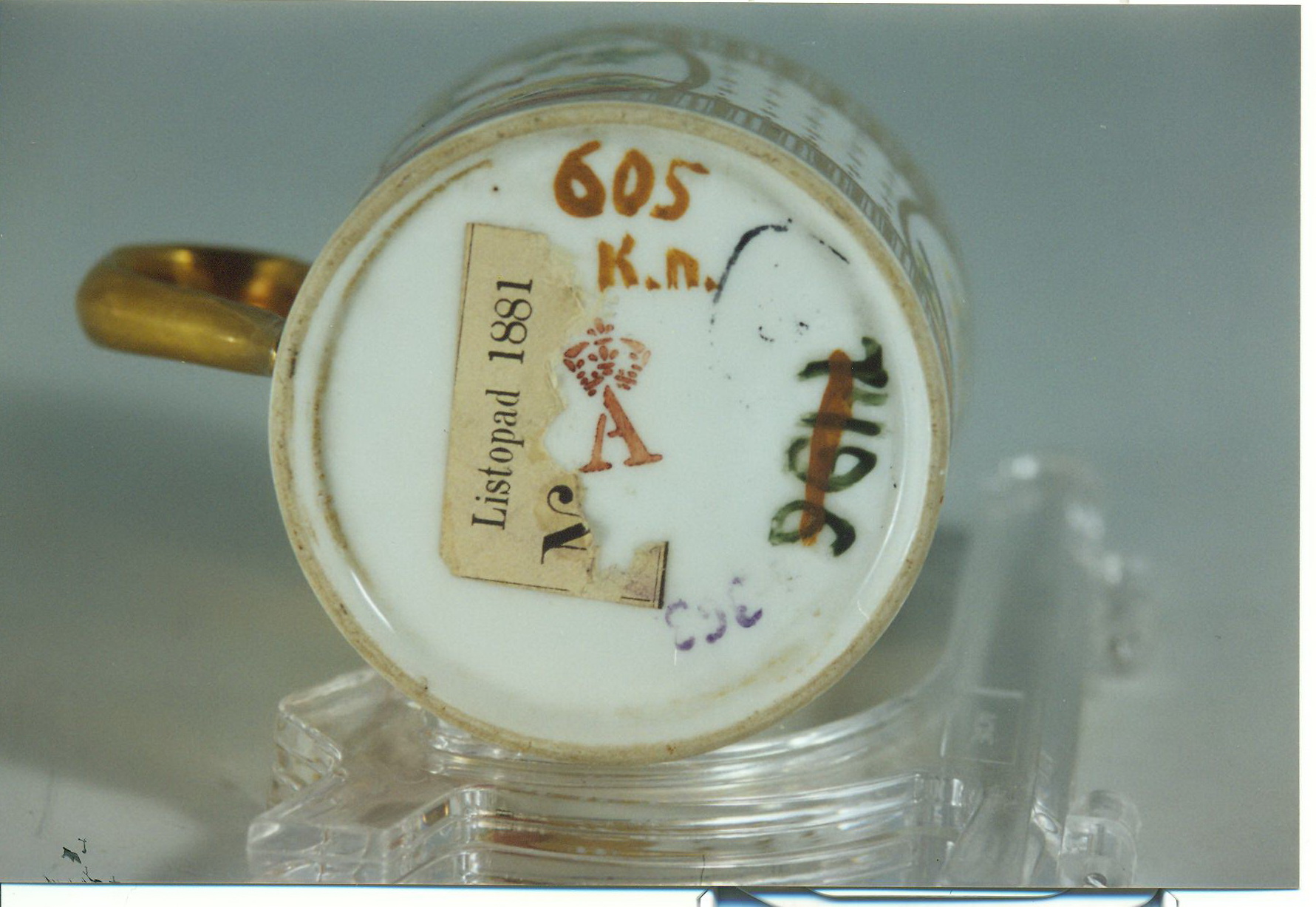 Історія Атрибуціi: консультація Р.С. Соловейчик (Ермітаж, 1961 р.) - Париж, Лебеф, Rue Thiroux (хороша за якістю)/Кількість: 1/Зв'язок з іншими предм. музею: блюдце 606 ПК МХ