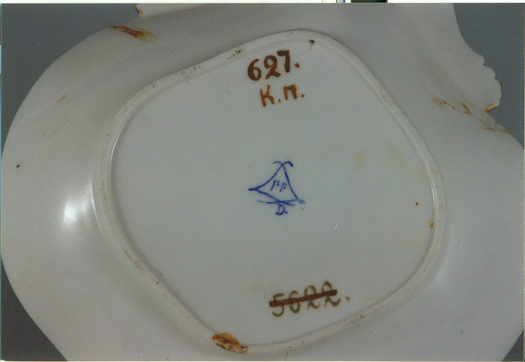 Історія Атрибуціi: консультація Р.С. Соловейчик (Ермітаж, 1961 р.) - Севр, 1793 р. (тарілка ?, мяка порцеляна)/Кількість: 1/Старі документи прийому: за списком № 181, серія 0015-16/Зв'язок з іншими предм. музею: аналог 626 ПК