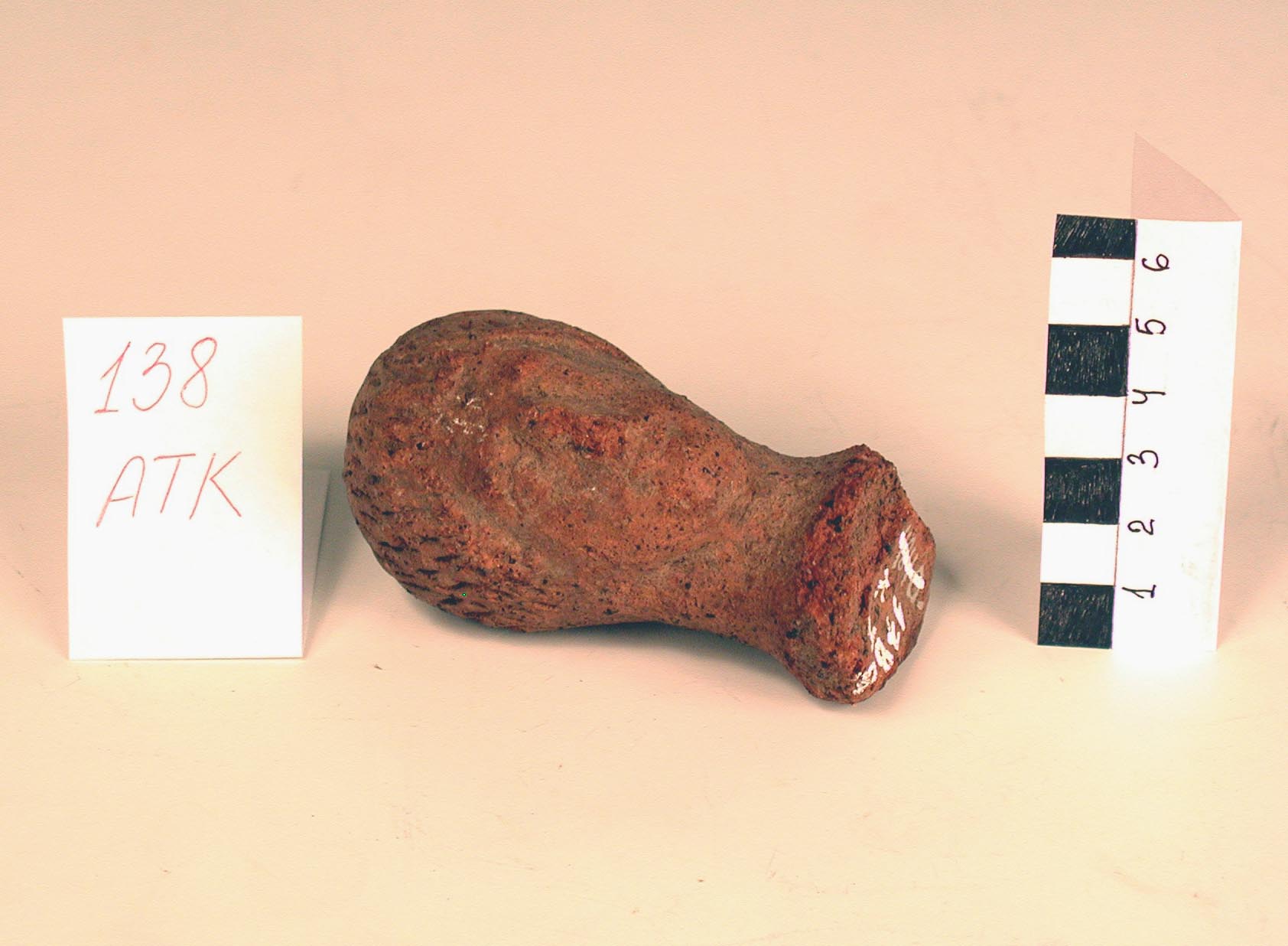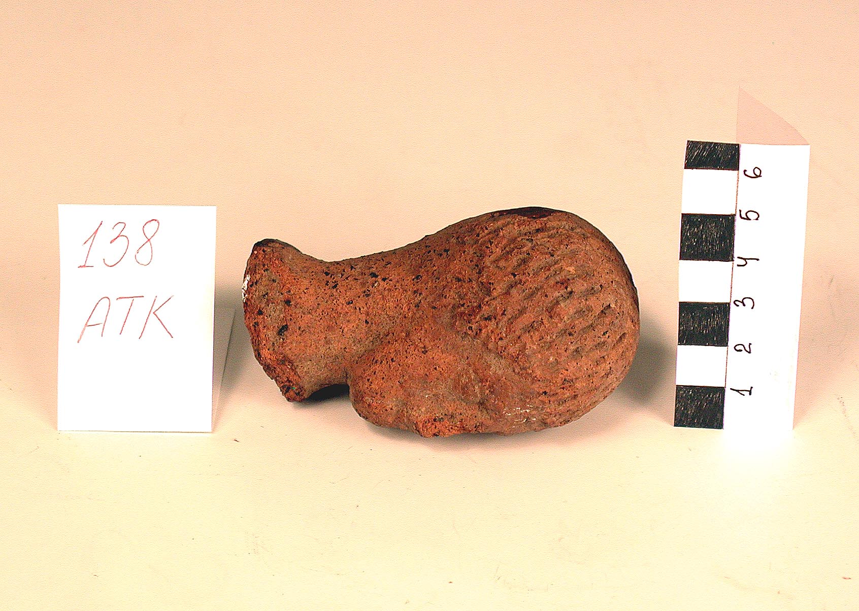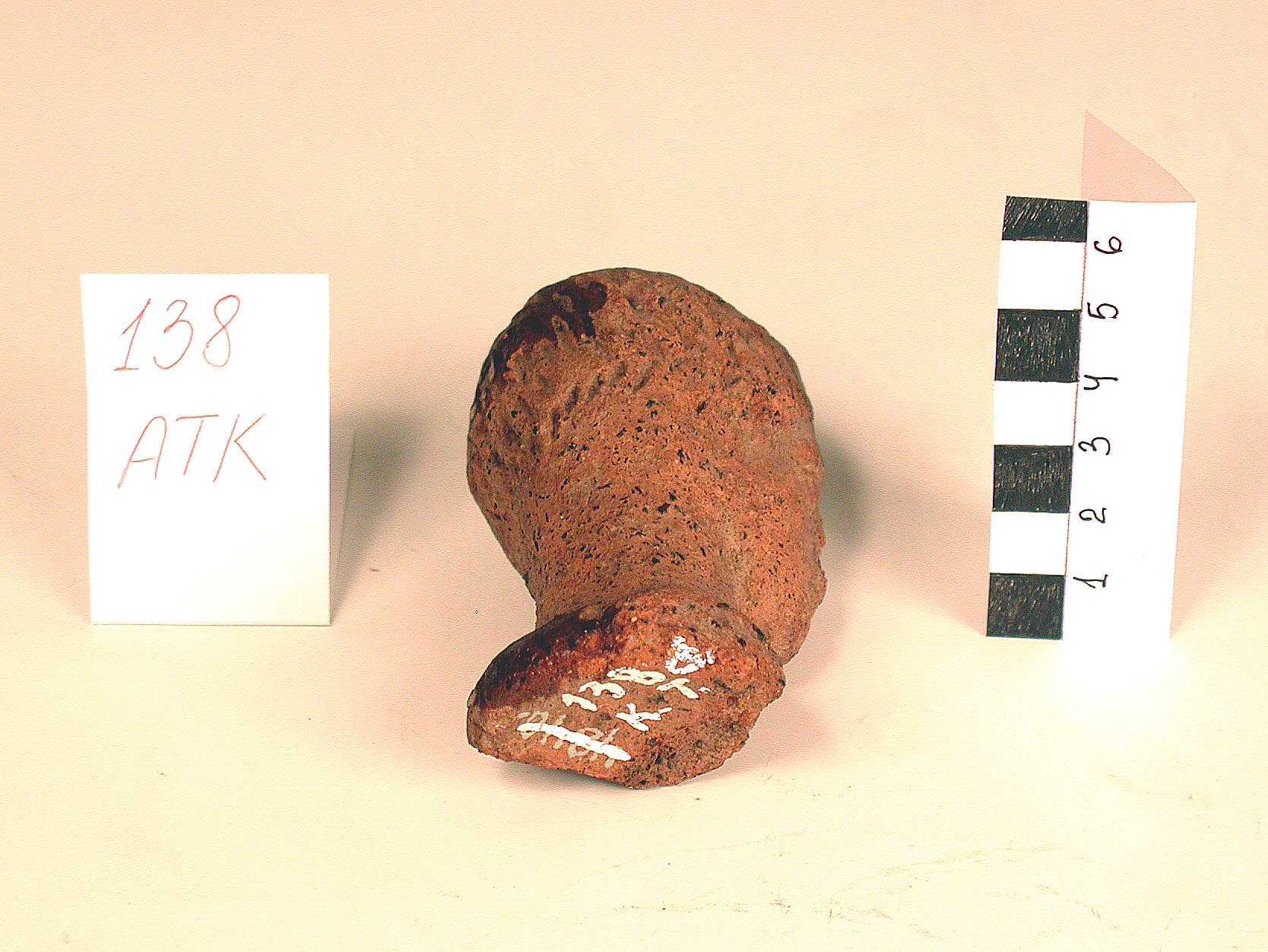Додаток до назва (лист, ...): Очі і рот лише злегка намічені. На тім'ї невелике заглиблення. В глині багато дрібних шматочків вугілля./Кількість: 1/Старі документи прийому: У чинній інвентарній книзі старі документи прийому не зазначені.