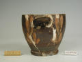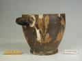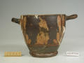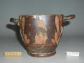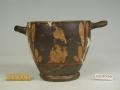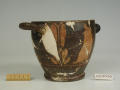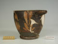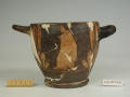 Додаток до назва (лист, ...): На кожному боці чаші малюнок, що повторюється. Між двома зображеними вертикально гілками оливи вміщена фігура жінки, що йде вліво. Вона загорнута у плащ, складки якого продряпані. Під зображеннями навколо посудини проходять дві резервні смужки./Ком. до розмірів: Коментар до розмірів: одиниця виміру не зазначена./Кількість: 1/Старі документи прийому: У чинній інвентарній книзі старі документи прийому не зазначені.