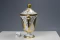 Потерта позолота. Приклеєна одна ручка. Дореставрована верхушка кришки. Місцями - незначні вибоїни.,