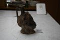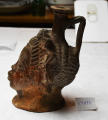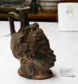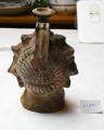 Додаток до назва (лист, ...): Волосся зпереду вкладене рядками у вигляді поздовжніх витих трубочок. Кілька відхилене назад горло посудини з прямою ручкою вміщене на тім'ї, за вінком. Темно-коричневий лак на одній стороні обличчя переходить у червоний на іншій./Кількість: 1/Старі документи прийому: У чинній інвентарній книзі старі документи прийому не зазначені.