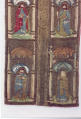 Додаток до назва (лист, ...): полтно прямокутної форми, на якому у два вертикалі ряди розташовані 6 фігур святих, які стоять під арками.Вся поверхня вишита метелевою ниткою, фігури - кольоровим шовком та метелевою ниткою. Кольори вишивки: червоний, блакитний, зелений та білий./Кількість: 1