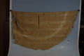 Додаток до назва (лист, ...): Шовк жовтувато-коричневого кольру, декорований паралельними смугами , між якими знаходяться круглі ажурні медальйони. Кольори: жовто- коричневий./Кількість: 1/Старі документи прийому: Акт від 28.12.1955 р.