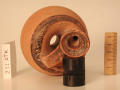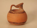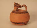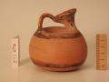 Додаток до назва (лист, ...): Горло вузьке, коротке, з сильним нахилом всередину до вигнутої під кутом ручки. Три чорнолакові смужки розташовані на корпусі на рівній відстані одна від одної: вузька смуга між двома широкими. Вузька смуга виконана слабим розчином лаку. Вінця (всередині і ззовні), а також ручка вкриті лаком./Кількість: 1/Опис: Горло вузьке, коротке, з сильним нахилом всередину до вигнутої під кутом ручки. Три чорнолакові смужки розташовані на корпусі на рівній відстані одна від одної: вузька смуга між двома широкими. Вузька смуга виконана слабим розчином лаку. Вінця (всередині і ззовні), а також ручка вкриті лаком.