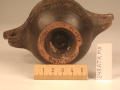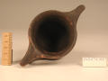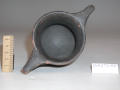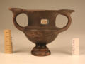 Додаток до назва (лист, ...): Вінця злегка відігнуті назовні. Тулово різко розділене на дві частини. У верхній - стінки ледь ввігнуті, в нижній опуклі. Ніжка у вигляді короткого стрижня і профільованої основи. Ручки у вигляді округлих дужок, до яких зверху притиснутий порінвняно великий і плотний шип, розташований горизонтально на рівні країв вінець. Вся поверхня всередині і зовні вкрита чорним лаком. Без лака залишена вузька смуга на внутрішньому боці ніжки. Місцями лак набуває вигляду червонувато-бурих плям./Кількість: 1/Опис: Вінця злегка відігнуті назовні. Тулово різко розділене на дві частини. У верхній - стінки ледь ввігнуті, в нижній опуклі. Ніжка у вигляді короткого стрижня і профільованої основи. Ручки у вигляді округлих дужок, до яких зверху притиснутий порінвняно великий і плотний шип, розташований горизонтально на рівні країв вінець. Вся поверхня всередині і ззовні вкрита чорним лаком. Без лака залишена вузька смуга на внутрішньому боці ніжки. Місцями лак набуває вигляду червонувато-бурих плям.