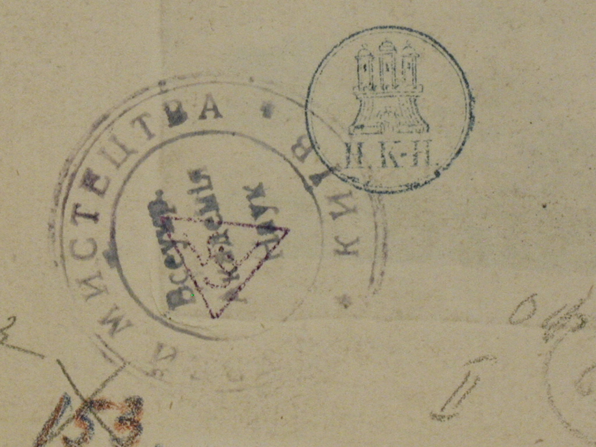 Поля частково обрізані, плями, по краях забруднення, у центрі вертикальний злам.,