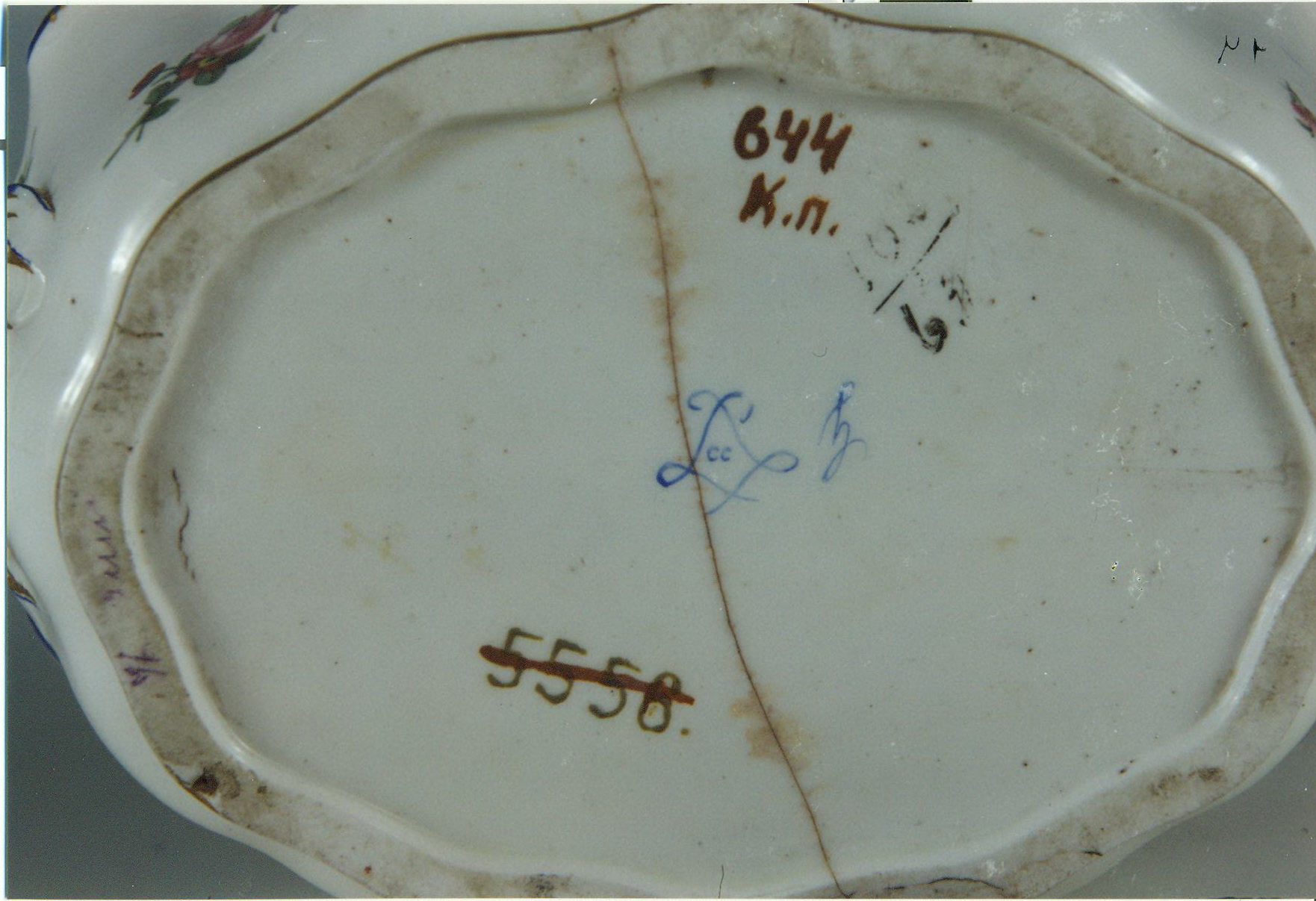 Історія Атрибуціi: консультація Р.С. Соловейчик (Ермітаж, 1961 р.) - Севр, 1780 р. (мяка порцеляна)/Кількість: 1/Старі документи прийому: акт № 103/690